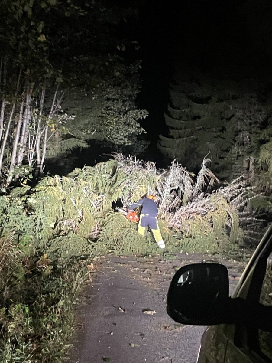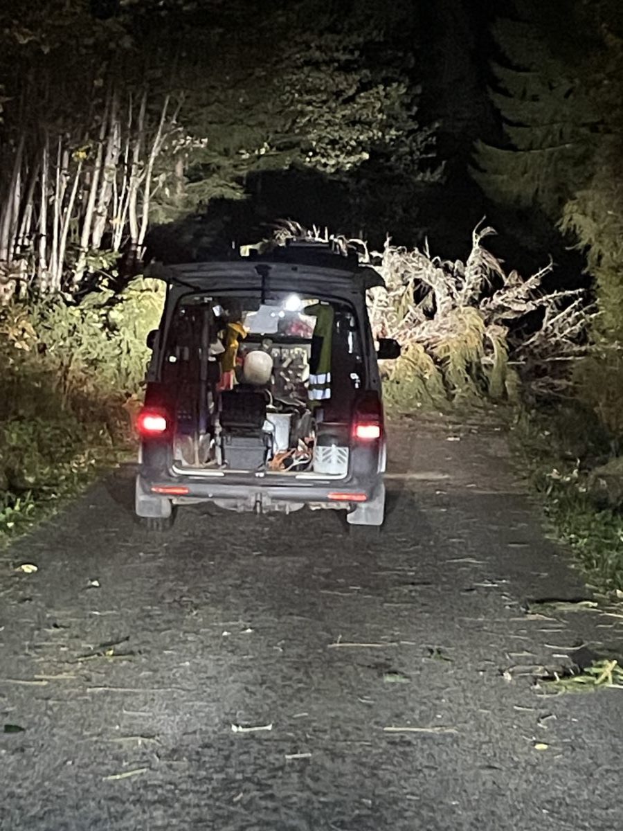 Den kraftige vinden førte til at en rekke trær veltet over linjene i alle kommunene. Mannskapene har jobbet døgnet rundt for å rydde tre av kraftlinjene og gjenopprette strømforsyningen. Flere steder måtte trær fjernes eller sprenges for å komme til.