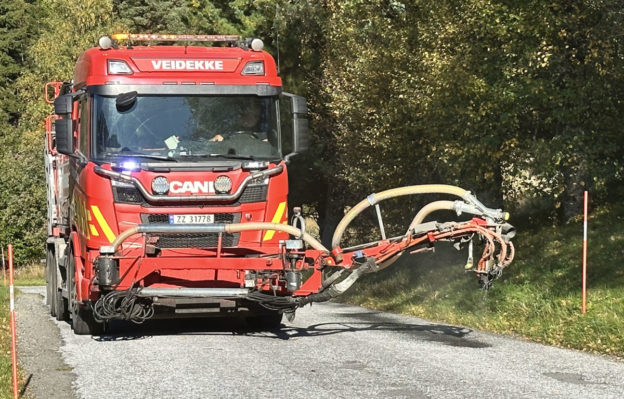 Dersom du har observert ein rød veidekkebil med ei lang arm frampå, så er det Steinar Furali frå Elverum som er på tur rundt bygda for å reparere dei største hola i asfalten. Han sprøyter hola full med ei slags asfaltblanding, og så legg han på eit «lokk» med strøsand på toppen.