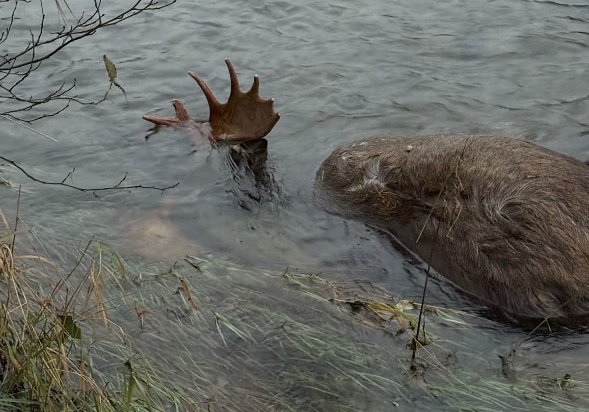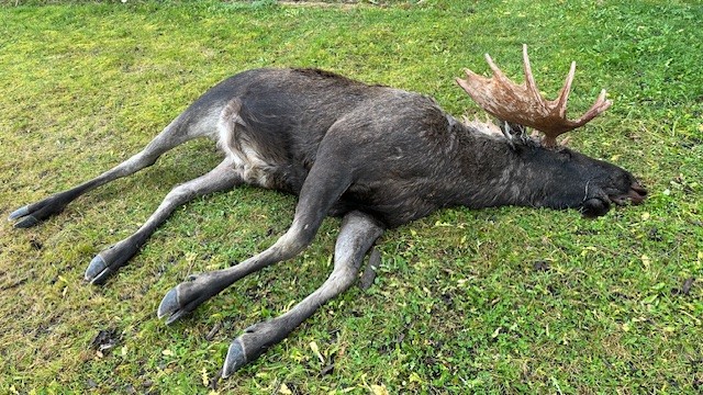 Kvar elgen er komen frå det er det ingen som veit, med det er nok sannsynleg at den har prøve å forsere elva og vorte dregen med og har drukna. Elgen var 400 kg i rundvekt – det vil seie rundt 280 kg i slaktvekt, trur Ståle. Det var i allfall eit staseleg dyr som hadde 15 takkers gevir. Elgen skal no graves ned så snart som muleg seier Ståle.