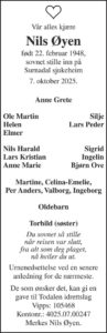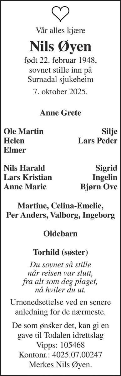 Vi legg difor ut ein dødsannonse for Vevang Gravferd.