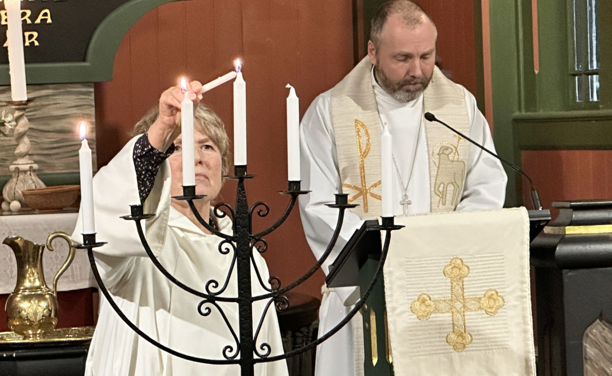 Kateket Aud Brynhild Indset tente lys for kvar enkelt saman med ei lita minnestund. Liturg var prost Vidar W. Rygh. Foto Jon Olav Ørsal
